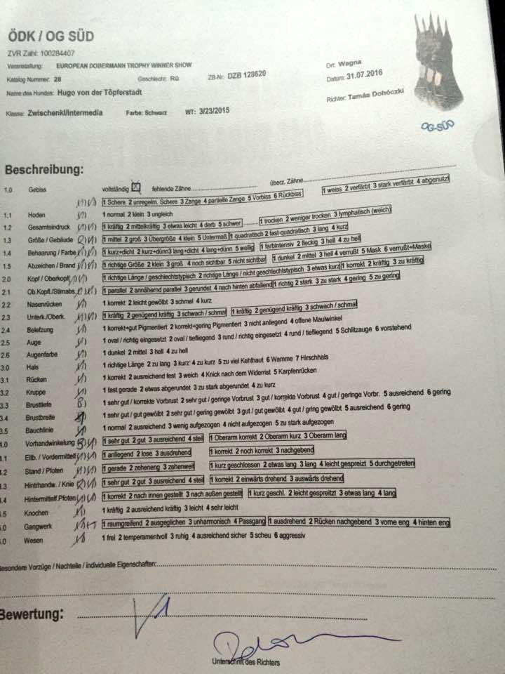 European Dobermann Trophy Winner Show/A 2016 - Exc1, EDT Winner 2016 (Tamas Dohoczki - HU)